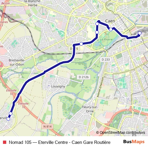 Click here to view the nearest Nomad 105 - Eterville Centre - Caen Gare Routière bus stop.