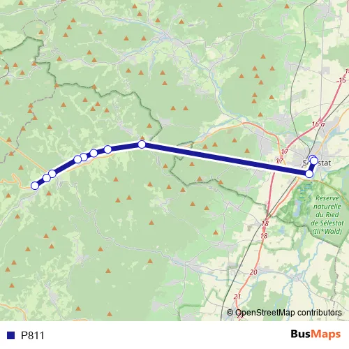 The first stop of the P811 bus route is Sélestat Schweisguth and the last stop is Ste-Marie-aux-Ms P. de Gaulle. P811 is operational during tous les jours.