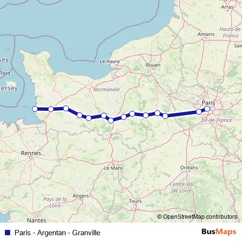 Paris - Argentan - Granville rail Route Map