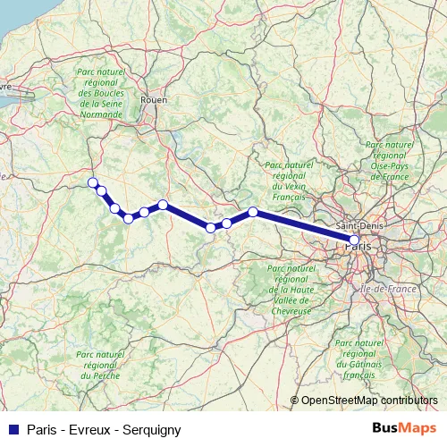 Additional information: Paris - Evreux - Serquigny has 10 stops and the total trip duration