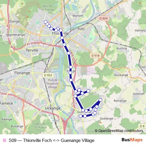 Bus S09 - Thionville Foch <-> Guenange Village in Guenange: Stops & Timetable