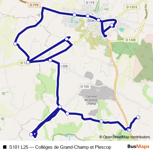 Click here to view the nearest S101 L25 - Collèges de Grand-Champ et Plescop bus stop.