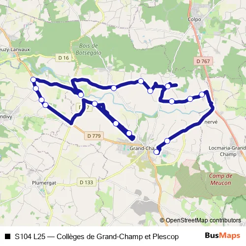 Click here to view the nearest S104 L25 - Collèges de Grand-Champ et Plescop bus stop.