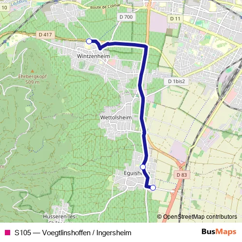 Bus S105 - Voegtlinshoffen / Ingersheim in Colmar: Stops & Timetable