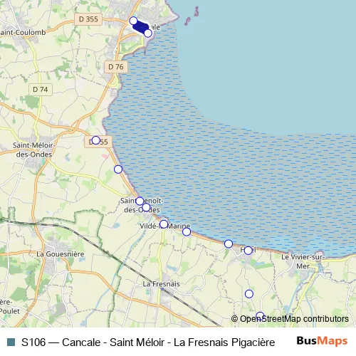 Click here to view the nearest S106 - Cancale - Saint Méloir - La Fresnais Pigacière bus stop.
