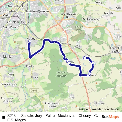 Click here to view the nearest S213 - Scolaire Jury - Peltre - Mecleuves - Chesny - C.E.S. Magny bus stop.