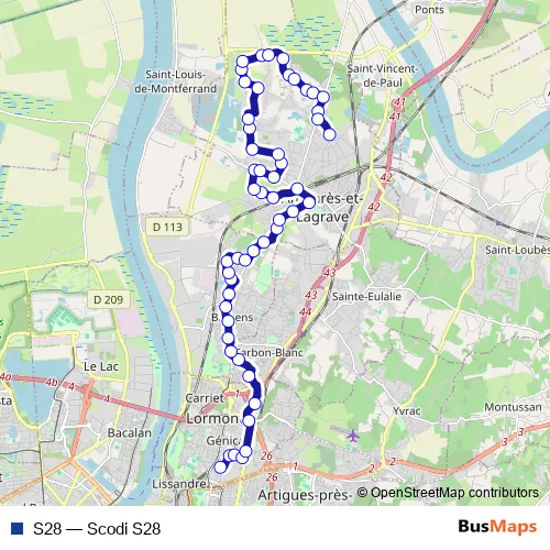 See why over 2 million users trust and consider busmaps.com as the best public transport website. busmaps gives you Bordeaux Buses suggested routes, real-time bus tracker, line route maps in Bordeaux, and helps to find the closest S28 bus stops near you. No internet available? Download an offline PDF map and bus schedule for the S28 bus to take on your trip.