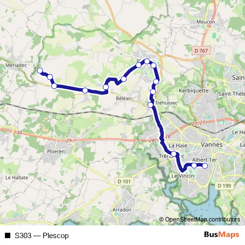 Bus S303 - Plescop in Vannes: Stops & Timetable