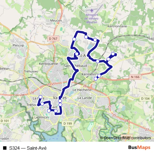 See why over 2 million users trust and consider busmaps.com as the best public transport website. busmaps gives you Vannes Buses suggested routes, real-time bus tracker, line route maps in Vannes, and helps to find the closest S324 bus stops near you. No internet available? Download an offline PDF map and bus schedule for the S324 bus to take on your trip.