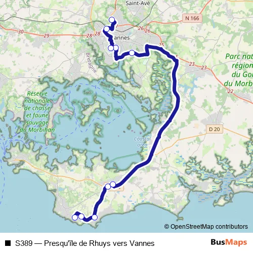 Bus S389 - Presqu'ïle de Rhuys vers Vannes in Vannes: Stops & Timetable
