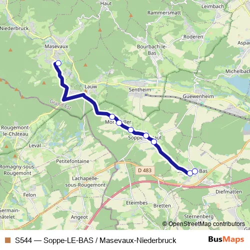 Click here to view the nearest S544 - Soppe-LE-BAS / Masevaux-Niederbruck bus stop.