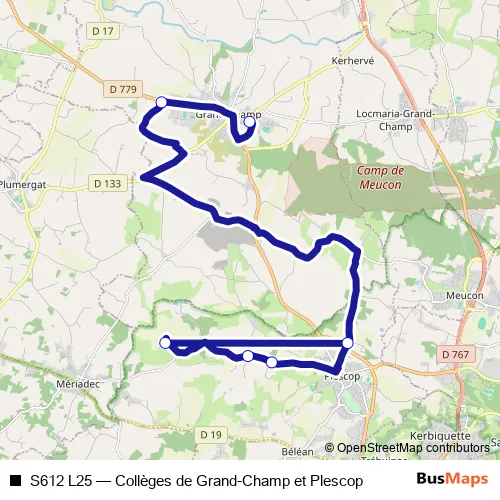 Click here to view the nearest S612 L25 - Collèges de Grand-Champ et Plescop bus stop.