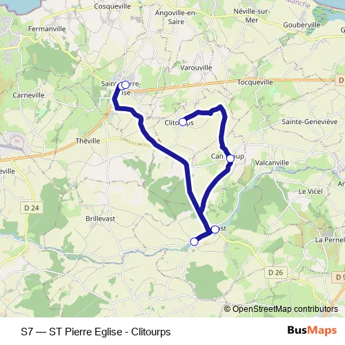 Click here to view the nearest S7 - ST Pierre Eglise - Clitourps bus stop.