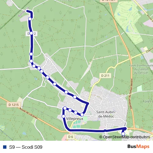 The first stop of the S9 bus route is Lycée Sud Médoc and the last stop is Castelnau. S9 (Scodi S09) is operational during en semaine.