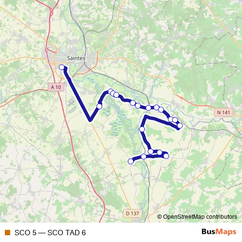 Bus SCO 5 - SCO TAD 6 in Saintes: Stops & Timetable
