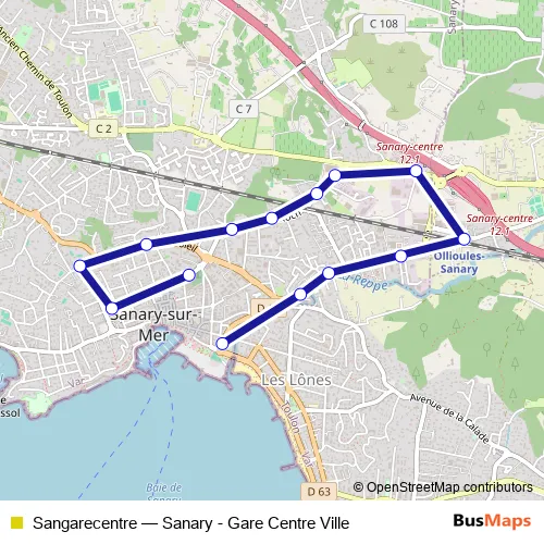 Bus Sangarecentre - Sanary - Gare Centre Ville: Full Schedule in Sanary-sur-Mer