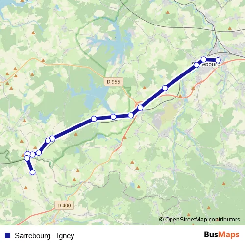 The first stop of the Sarrebourg - Igney bus route is Sarrebourg LP Messmer and the last stop is Igney Mairie. Sarrebourg - Igney (Sarrebourg - Igney) is operational during tous les jours.