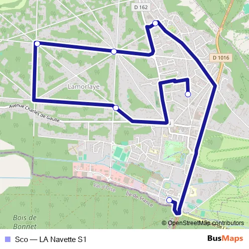 The first stop of the Sco bus route is Haras du coq and the last stop is Ecole Zone Nord. Sco (LA Navette S1) is operational during tous les jours.