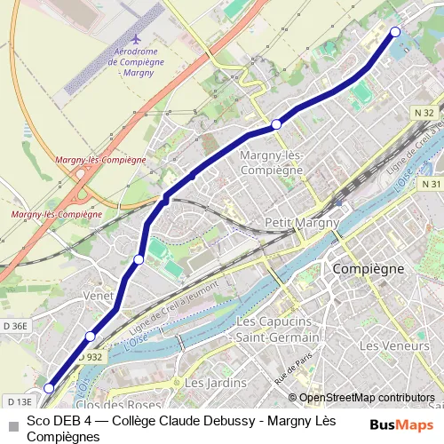 Click here to view the nearest Sco DEB 4 - Collège Claude Debussy - Margny Lès Compiègnes bus stop.