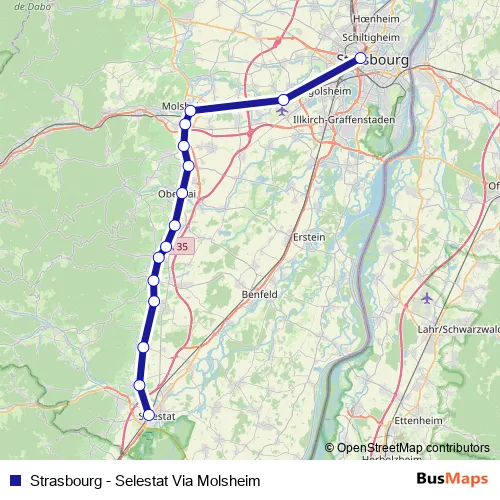 Strasbourg - Selestat Via Molsheim bus Route Map