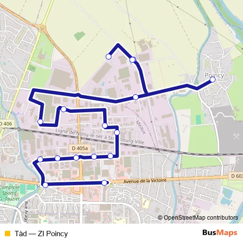 The first stop of the Tàd bus route is Mairie and the last stop is Georges Claude - dépose. Tàd (ZI Poincy) is operational during tous les jours.