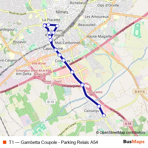 See why over 2 million users trust and consider busmaps.com as the best public transport website. busmaps gives you Nimes Buses suggested routes, real-time bus tracker, line route maps in Nimes, and helps to find the closest T1 bus stops near you. No internet available? Download an offline PDF map and bus schedule for the T1 bus to take on your trip.