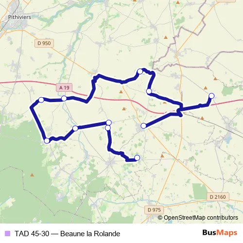 Services on the TAD 45-30 - Beaune la Rolande bus stop at 19:26 on lundi, mardi, mercredi, jeudi, vendredi.