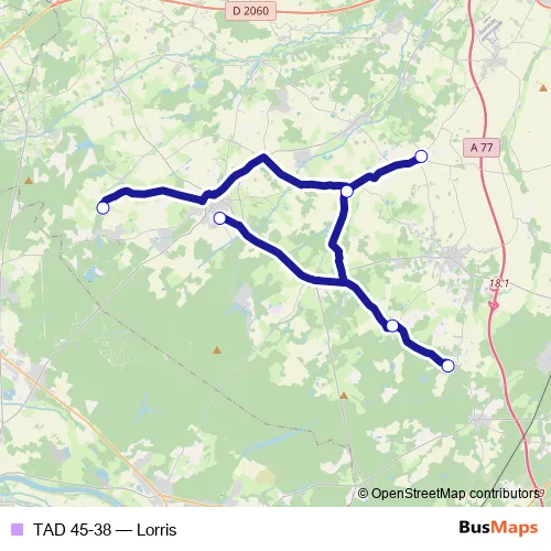 Services on the TAD 45-38 - Lorris bus start at 18:55 on lundi, mardi, mercredi, jeudi, vendredi.
