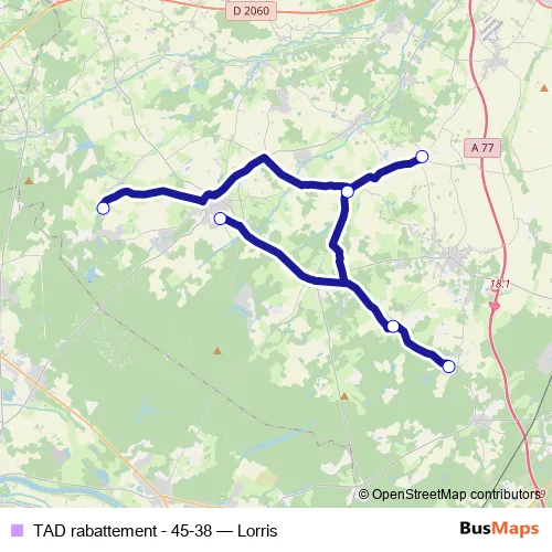 Services on the TAD rabattement - 45-38 - Lorris bus stop at 19:43 on lundi, mardi, mercredi, jeudi, vendredi.
