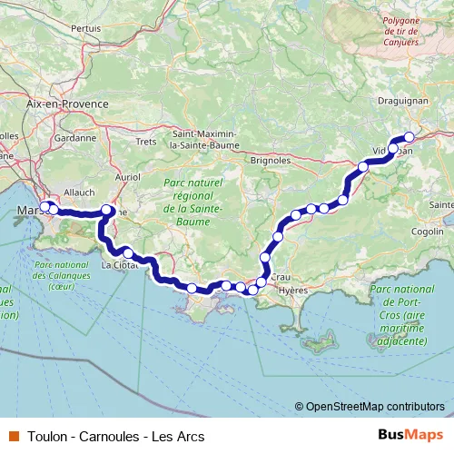 Toulon. Toulon - Carnoules - Les Arcs (Toulon - Carnoules - Les Arcs) is operational during tous les jours.