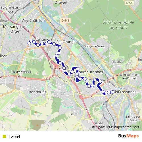 See why over 2 million users trust and consider busmaps.com as the best public transport website. busmaps gives you Evry Buses suggested routes, real-time bus tracker, line route maps in Evry, and helps to find the closest Tzen4 bus stops near you. No internet available? Download an offline PDF map and bus schedule for the Tzen4 bus to take on your trip.