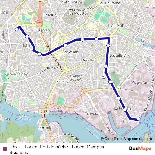 Bus Ubs - Lorient Port de pêche - Lorient Campus Sciences in Lorient: Stops & Timetable