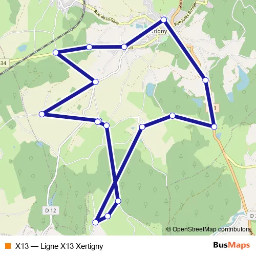 Click here to view the nearest X13 - Ligne X13 Xertigny bus stop.