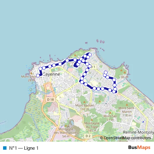 See why over 2 million users trust and consider busmaps.com as the best public transport website. busmaps gives you Cayenne Buses suggested routes, real-time bus tracker, line route maps in Cayenne, and helps to find the closest N°1 bus stops near you. No internet available? Download an offline PDF map and bus schedule for the N°1 bus to take on your trip.