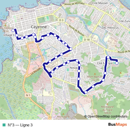 Bus N°3 - Ligne 3 in Cayenne: Stops & Timetable