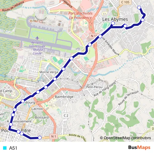 See why over 2 million users trust and consider busmaps.com as the best public transport website. busmaps gives you Pointe-a-Pitre Buses suggested routes, real-time bus tracker, line route maps in Pointe-a-Pitre, and helps to find the closest A51 bus stops near you. No internet available? Download an offline PDF map and bus schedule for the A51 bus to take on your trip.
