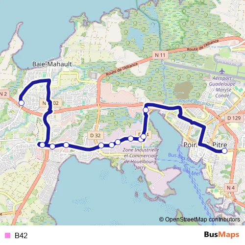 See why over 2 million users trust and consider busmaps.com as the best public transport website. busmaps gives you Pointe-a-Pitre Buses suggested routes, real-time bus tracker, line route maps in Pointe-a-Pitre, and helps to find the closest B42 bus stops near you. No internet available? Download an offline PDF map and bus schedule for the B42 bus to take on your trip.