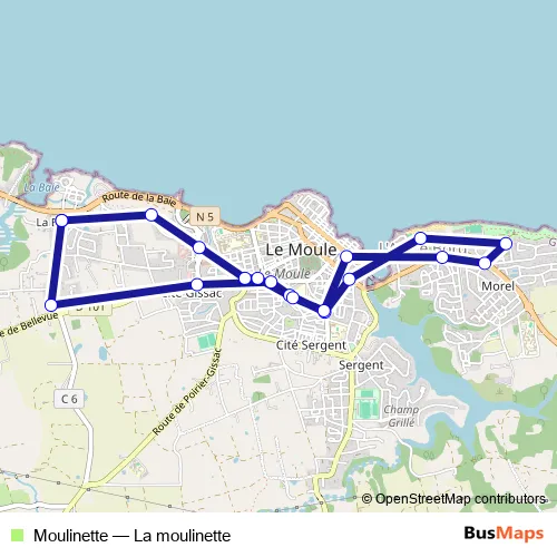 See why over 2 million users trust and consider busmaps.com as the best public transport website. busmaps gives you Le Moule Buses suggested routes, real-time bus tracker, line route maps in Le Moule, and helps to find the closest Moulinette bus stops near you. No internet available? Download an offline PDF map and bus schedule for the Moulinette bus to take on your trip.