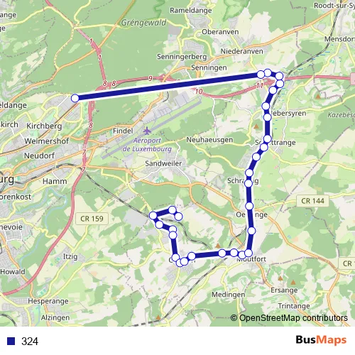 See why over 2 million users trust and consider busmaps.com as the best public transport website. busmaps gives you Contern Buses suggested routes, real-time bus tracker, line route maps in Contern, and helps to find the closest 324 bus stops near you. No internet available? Download an offline PDF map and bus schedule for the 324 bus to take on your trip.