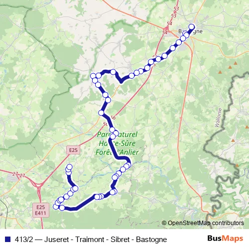 Aller: Bastogne Pépinière - Quai 5 ➞ Juseret Route de Bercheux