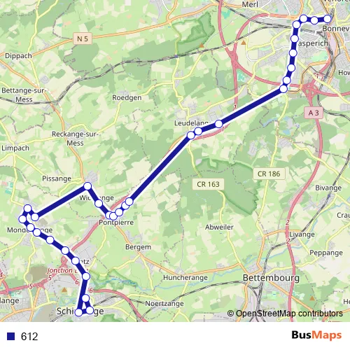 Bus 612 in Luxembourg: Stops & Timetable