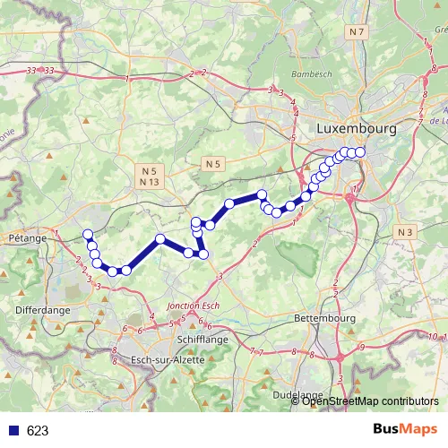 See why over 2 million users trust and consider busmaps.com as the best public transport website. busmaps gives you Luxembourg Buses suggested routes, real-time bus tracker, line route maps in Luxembourg, and helps to find the closest 623 bus stops near you. No internet available? Download an offline PDF map and bus schedule for the 623 bus to take on your trip.