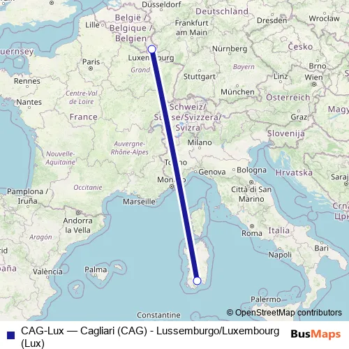 Click here to view the nearest CAG-Lux - Cagliari (CAG) - Lussemburgo/Luxembourg (Lux) air stop.