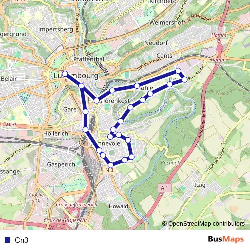 Bus Cn3 in Luxembourg: Stops & Timetable