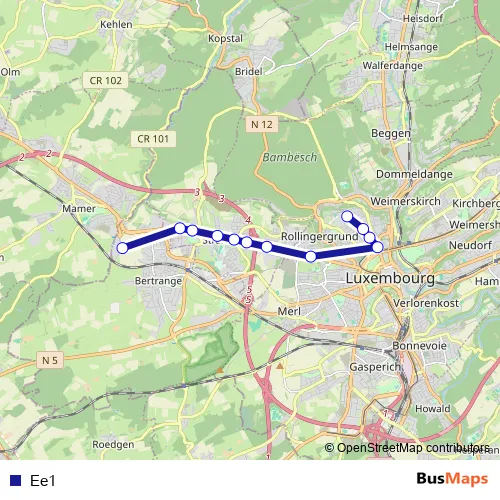 Bus Ee1 in Luxembourg: Stops & Timetable