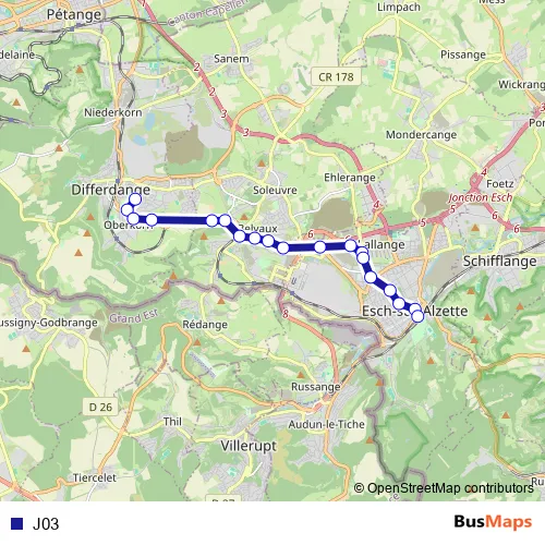 Bus J03 in Esch-sur-Alzette: Stops & Timetable