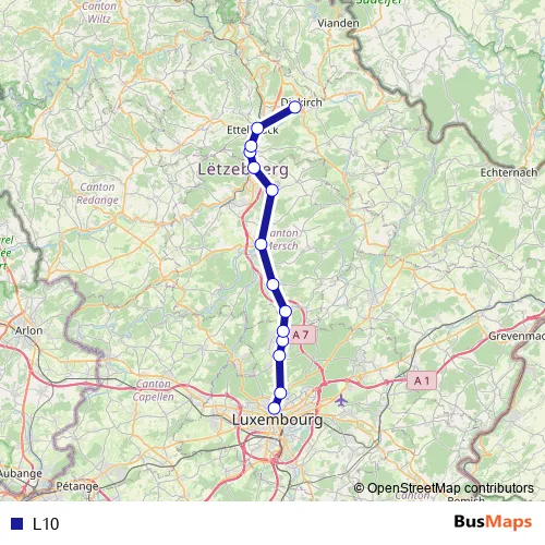 The first stop of the L10 bus route is Limpertsberg, Bd.P. Eyschen and the last stop is Diekirch, Gare routière. L10 is operational during tous les jours.