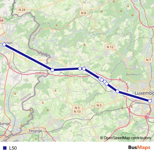 See why over 2 million users trust and consider busmaps.com as the best public transport website. busmaps gives you Mamer Buses suggested routes, real-time bus tracker, line route maps in Mamer, and helps to find the closest L50 bus stops near you. No internet available? Download an offline PDF map and bus schedule for the L50 bus to take on your trip.