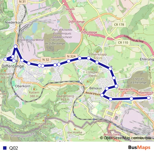 See why over 2 million users trust and consider busmaps.com as the best public transport website. busmaps gives you Differdange Buses suggested routes, real-time bus tracker, line route maps in Differdange, and helps to find the closest Q02 bus stops near you. No internet available? Download an offline PDF map and bus schedule for the Q02 bus to take on your trip.