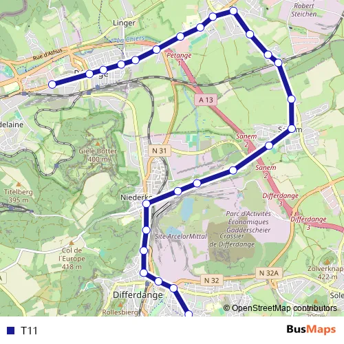 See why over 2 million users trust and consider busmaps.com as the best public transport website. busmaps gives you Differdange Buses suggested routes, real-time bus tracker, line route maps in Differdange, and helps to find the closest T11 bus stops near you. No internet available? Download an offline PDF map and bus schedule for the T11 bus to take on your trip.